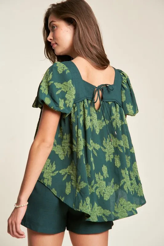 Davi & Dani Nature Printed Square Neck Puff Sleeve Blouse