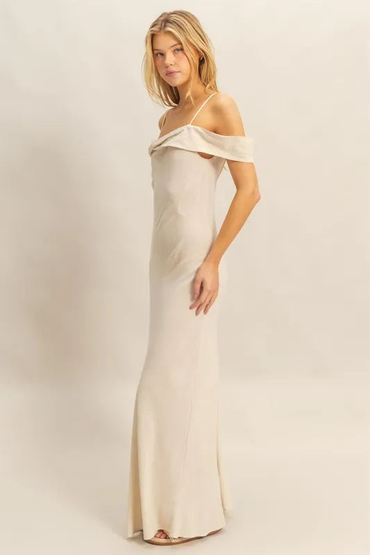 Spaghetti Strap Cowl Neck Split Midi Slit Dress