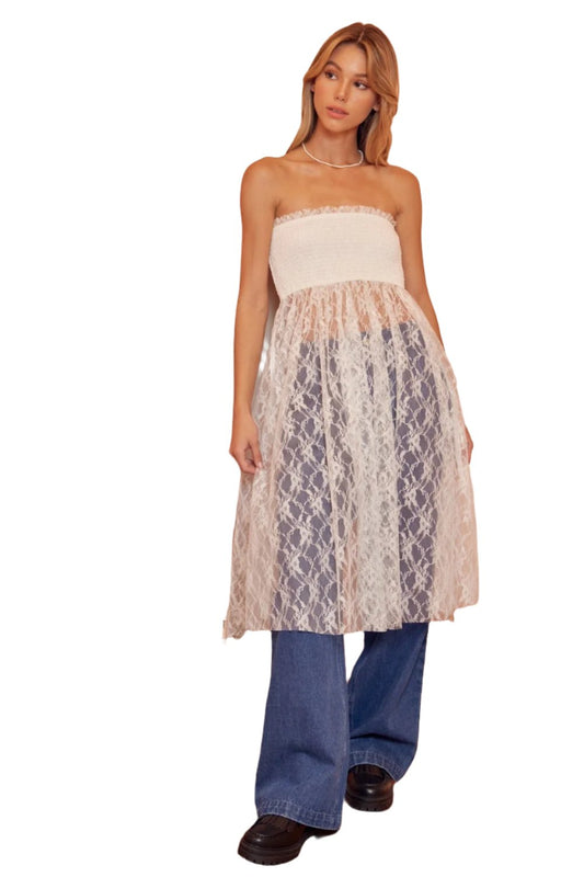 Idem Ditto Smocked Lace Sheer Tube Dress