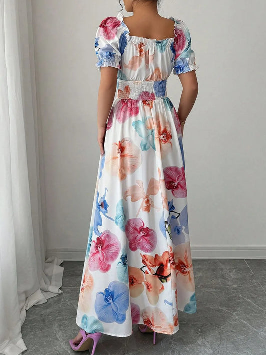 Floral Off Shoulder Smocked Waist Maxi Dress